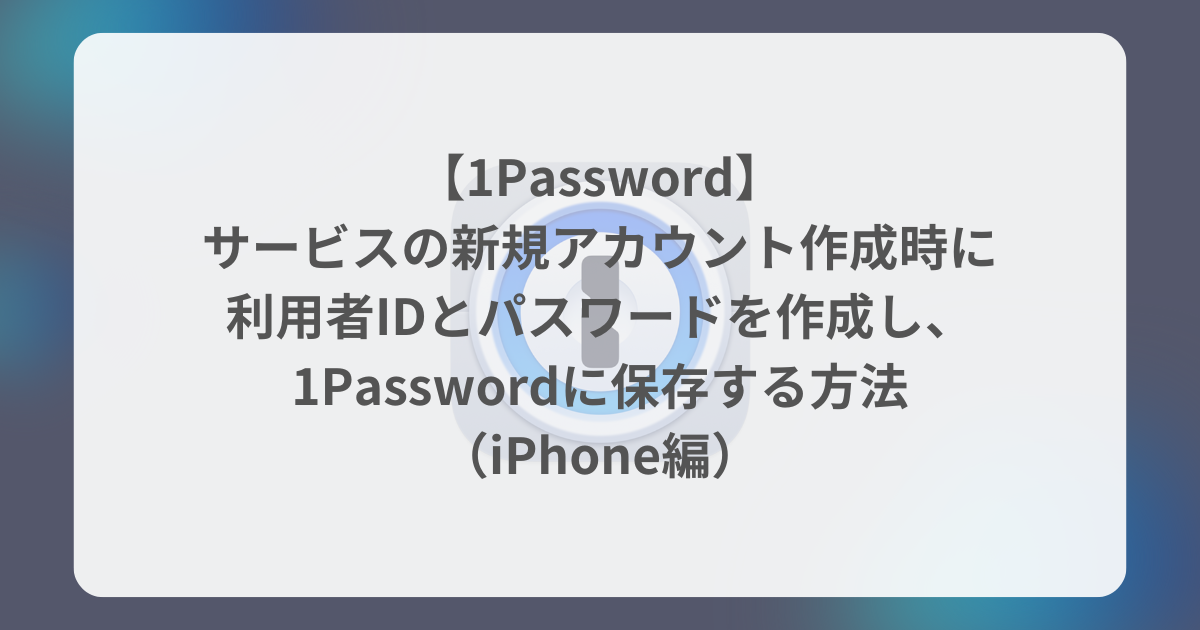 本記事では、iPhoneにおいて、サービスのの新規アカウント作成時に、利用者IDとパスワードを作成して1Passwordに保存する方法について解説します。