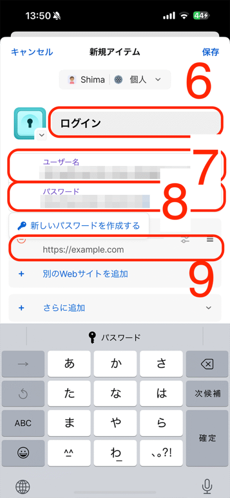 本記事では、iPhoneにおいて、1Passwordアプリからサービスの利用者IDとパスワードを登録する方法について解説します。