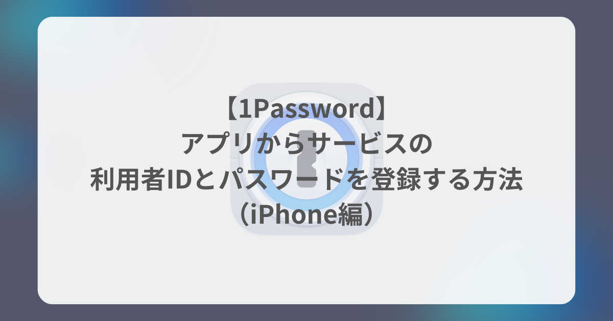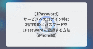 本記事では、iPhoneにおいて、1Passwordアプリからサービスの利用者IDとパスワードを登録する方法について解説します。
