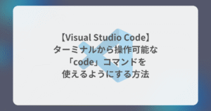 以下のように、エラーメッセージが表示される場合は、以下の記事を参考に「code」コマンドを使用できるように設定を行います。