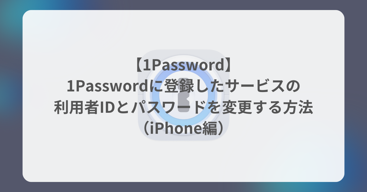 本記事では、iPhoneにおいて、1Passwordに登録したサービスの利用者IDとパスワードを変更する方法について解説します。