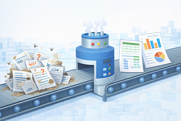どれだけ高度な分析手法を使っても、元のデータが汚れていれば信頼できる結論は得られません。入力ミスや欠損値、重複レコードなどを整理する前処理(データクレンジング)は、地味ですが非常に重要な工程です。