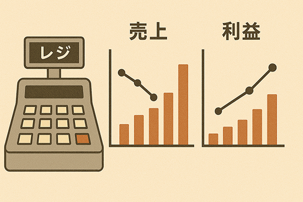 まず、「売上」と「利益」は違う概念であることを確認しておきます。売上は商品やサービスを販売して得た金額の総合計であり、そこから費用を差し引いた残りが利益です。