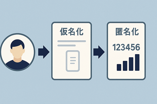 仮名化とは、名前や会員番号など「誰のデータかが分かる情報」を、別の記号や番号に置き換えることです。置き換えの対応表を別に安全に保管しておけば、必要に応じて元の個人をたどることもできます。
