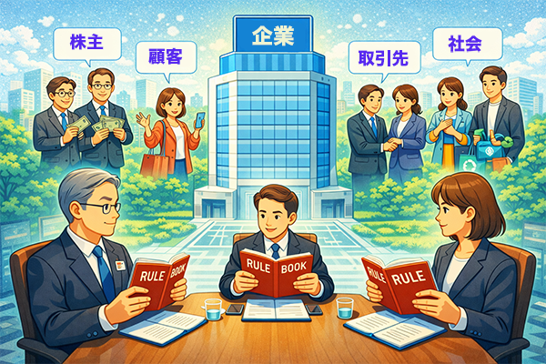 この章では、コーポレートガバナンスとは何か、その目的と基本的な考え方を説明します。企業が健全に経営され、ステークホルダーから信頼を得るために、なぜコーポレートガバナンスが必要なのかを押さえておきましょう。
