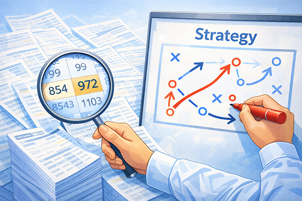 例えば、同じ仕事でも担当者によって処理時間が大きく異なる場合、作業手順に違いがあるのか、スキル差があるのか、といった視点で原因を探ります。ここで使われるのが、前の記事で触れたような各種経営情報分析手法です。