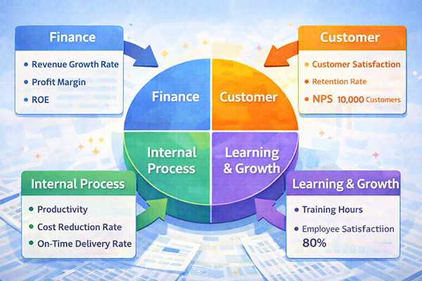従来は、売上や利益などの「財務指標」だけで会社の成績を判断しがちでした。しかし、顧客満足度や業務プロセスの効率、人材育成の状況などを無視してしまうと、短期的な数字はよくても長期的な成長が難しくなります。