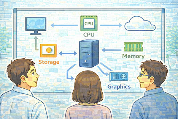 業務でコンピュータを利用する際には、CPUやメモリ、ストレージといった基本的な構成要素の役割を大まかに把握しておくと役に立ちます。たとえば、メモリ不足やディスク容量不足が、動作の遅さや保存エラーにつながると理解していれば、原因の切り分けがしやすくなります。