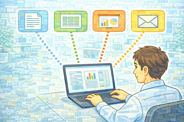 この章では、日々の業務の中で頻繁に使うアプリケーションソフトウェアを、どのように組み合わせて活用していくかという視点で整理します。単体での使い方だけでなく、「ツールをつなぐ」発想が重要になります。
