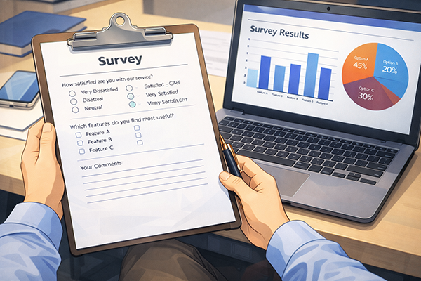 利用者満足度調査は、情報システムを実際に使っている社員や関係者にアンケートなどを行い、使いやすさや機能、応答速度、サポート体制などに対する満足度を把握する取り組みです。数値として表れにくい「使いづらさ」「ストレスの有無」などを知るうえで重要な手段となります。