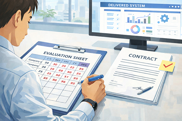 この章では、ベンダーからの提案書・見積書をどのように評価し、契約締結・受入れ・検収へ進めていくかを整理します。選定基準を事前に決めておくことが、公平な調達につながります。