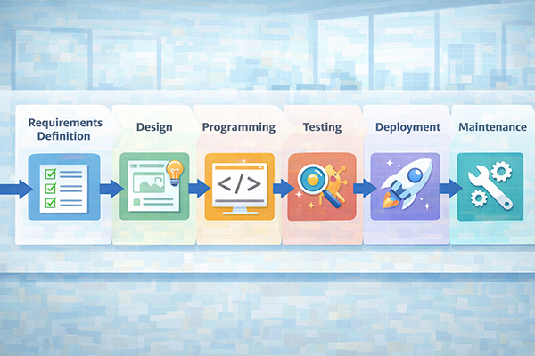 本記事では、システム開発のプロセスとして、要件定義・設計・プログラミングと単体テスト・統合テスト・導入と受入れ・保守という一連の流れを整理しました。それぞれの段階で、何を決め、どのような作業を行うのかを理解しておくことが、システム開発全体を正しくイメージするうえで重要です。