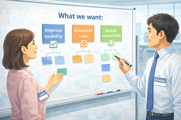 要件定義では、業務フローや利用者のニーズをもとに、必要な機能を漏れなく洗い出していきます。機能要件が曖昧なままだと、完成したシステムが「欲しかったものと違う」という結果になりかねません。