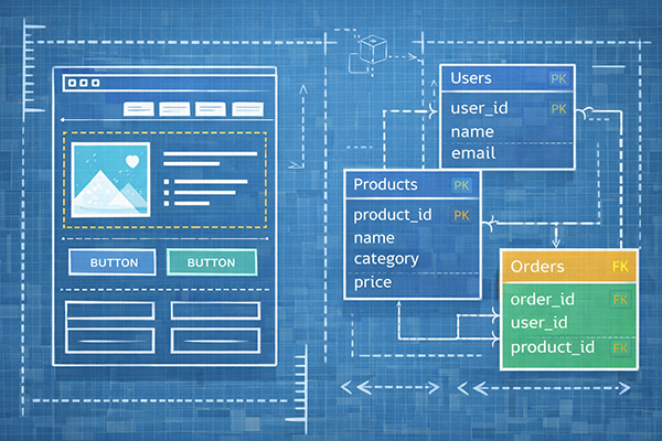 機能設計は、要件定義で決めた機能要件をもとに、「画面や帳票、バッチ処理などをどのような機能単位に分けて実現するか」を決める設計です。業務フローとシステム機能の対応関係を整理し、「このボタンを押すとどんな処理が走るか」「どのタイミングでどのデータを更新するか」といった点を明らかにします。