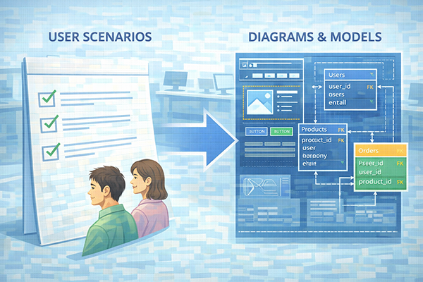 たとえば「顧客がWebサイトから商品を注文する」「管理者が在庫を補充する」といった一連の流れがユースケースです。ユースケースを整理することで、利用者にとって必要な機能が漏れていないかをチェックしやすくなり、要件定義の段階で関係者の認識を合わせるのに役立ちます。