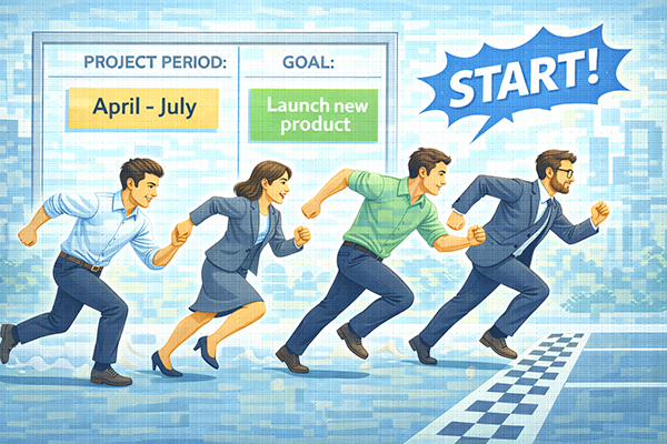 プロジェクトとは、限られた期間の中で、明確な目標を達成するために行われる一連の活動のことです。新しいシステムの導入、新店舗のオープン、新商品の開発など、いずれも「いつまでに」「何を実現するか」が決まっており、終わりがある点が特徴です。