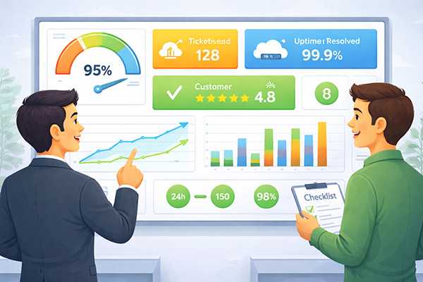 口頭の約束だけでは認識が食い違いがちですが、SLAとして文書にまとめておくことで、双方が同じ基準を共有できます。これにより、「思っていたより遅い」「こんなに止まるとは聞いていない」といったトラブルを減らすことができます。