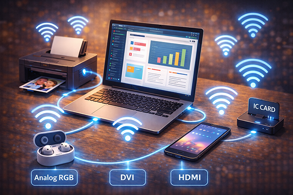 現在のPC向けインタフェースの多くはデジタル方式を採用しています。映像系であればDVIやHDMI、DisplayPort、データ系であればUSBやBluetoothなどが代表例です。アナログからデジタルへの移行によって、画質や音質の安定性が高まり、高解像度・高音質の機器が扱いやすくなりました。