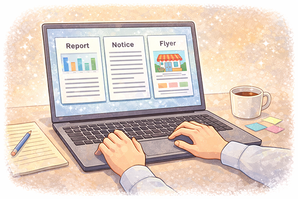 文書作成ソフトは、ビジネス文書や案内文などを見やすく整え、画像や表を組み合わせて分かりやすい資料を作ることに優れています。テンプレートや校正機能、共同編集機能などを活用することで、文書作成の効率を大きく高めることができます。単に文章を書く道具ではなく、文書作成のプロセス全体を支援するツールだと捉えると、その価値がより明確になります。
