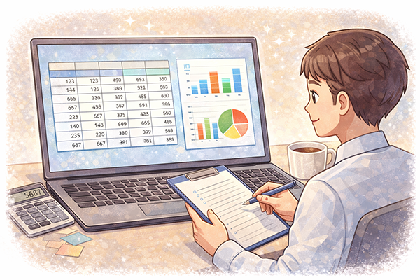 表計算ソフトは、数値やデータを表形式で整理し、計算や集計、グラフ化を行うための強力なツールです。関数やフィルタ機能を使えば、複雑な集計や分析も効率よく行うことができますが、複雑になりすぎるとミスに気づきにくくなるという面もあります。文書作成ソフトと表計算ソフト、それぞれの特徴と注意点を理解し、目的に応じて使い分けることで、日々の業務をより確実かつ効率的に進めることができるでしょう。