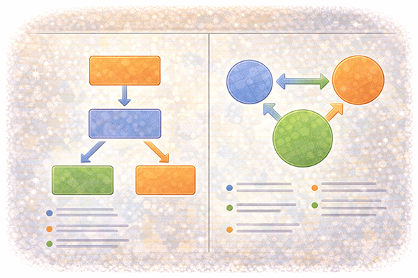 図形を使うときは、「図形そのもの」よりも「何を説明したいのか」を意識することが重要です。例えば、業務フローを説明する図では、「どこからどこへ処理が流れていくのか」を矢印の方向で示します。組織図であれば、「上下関係や所属」を図形の位置関係で表現します。このように、図形の位置や向きにも意味を持たせることで、言葉だけでは伝えにくい情報を補うことができます。