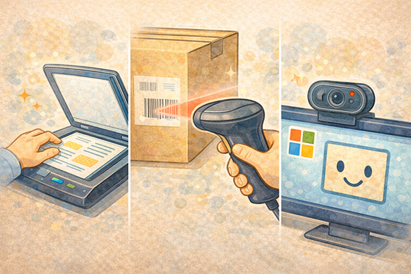 バーコードリーダーは、商品などに印刷されたバーコードを読み取り、そこに記録されたコード情報をコンピュータに入力する装置です。スーパーやコンビニのレジ、倉庫での在庫管理など、流通・販売の現場で広く利用されています。バーコードをスキャンするだけで商品コードや価格などの情報を素早く読み取れるため、手入力の手間やミスを大幅に減らせます。