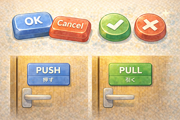 もしシグニファイアが不足していると、ユーザはどこを触ればよいか分からず、操作に戸惑ってしまいます。単なるテキストだけが並んでいる画面では、どこがボタンでどこが説明文なのか見分けがつきません。そのため、ボタンは周囲と色や形を変えて目立たせ、カーソルを合わせたときに変化を付けるなど、「ここが操作できる場所だ」と分かるサインを意識的に設計することが大切です。