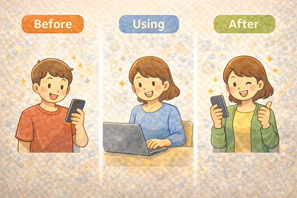 UXデザインは、画面の見た目や操作性だけでなく、サービスの利用前から利用後までを含めた「体験の質」を設計する考え方です。例えば、アプリをインストールする前の口コミや紹介ページ、初回起動時の案内、日常的な利用のしやすさ、トラブル時のサポート体制など、ユーザが接するあらゆる接点がUXの対象になります。