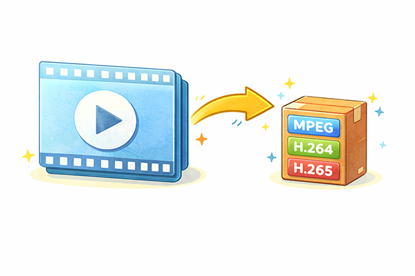 MP4の強みは、スマホやタブレット、パソコン、テレビ、ゲーム機など、さまざまな機器やアプリで広くサポートされている点です。インターネット上の動画配信サービスでも標準的に用いられており、「汎用性の高い動画ファイル形式」として押さえておくとよいでしょう。ここで注意したいのは、MP4というのはあくまで箱(コンテナ)の名前であり、その中で動画部分に使われる圧縮方式としてH.264やH.265といったコーデックが選ばれている、という構造です。