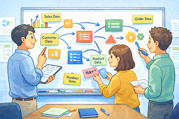 データ分析を行ううえで、最初に重要になるのは「業務でどんなデータを使っているのか」を洗い出し、それらの所在や内容を整理しておくことです。この段階で、分析の目的に対してどのデータが役に立つのか、またどのデータが不足しているのかを把握できます。データは集めれば終わりではなく、業務プロセスと密接に結び付いた形で設計し、蓄積していくことが求められます。