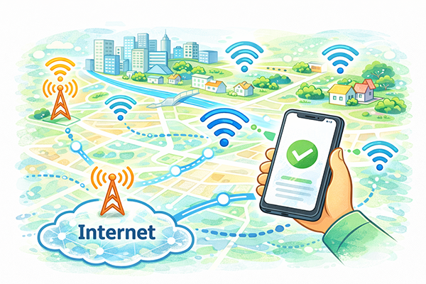 モバイル通信とWi-Fiは別の仕組みですが、スマートフォンから見ればどちらも「無線でインターネットにつながる手段」です。屋内ではアクセスポイントを経由したWi-Fiを利用し、屋外では携帯電話の基地局と通信する、といったように、状況に応じて使い分けることで、通信速度や料金をうまくコントロールできます。