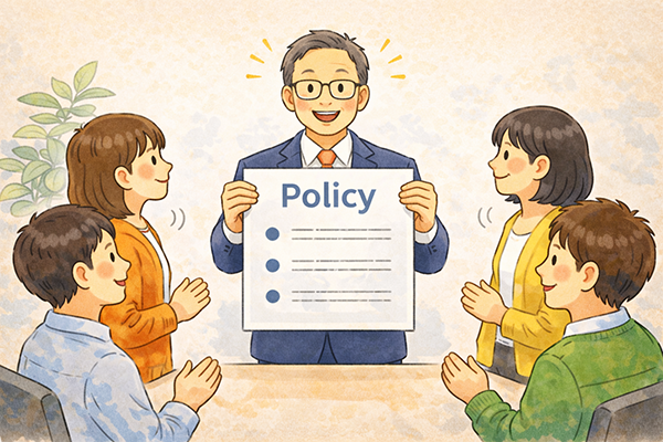 このポリシーをもとに、具体的な社内規程や手順書が作られます。たとえば、パスワードの長さや更新頻度、USBメモリ利用の禁止・制限、入退室管理の方法など、日々の業務で守るべき細かなルールは、すべて情報セキュリティポリシーの方針に沿って決められます。社員全員が同じルールを理解し、行動をそろえるためにも、わかりやすいポリシーの策定と周知が重要になります。