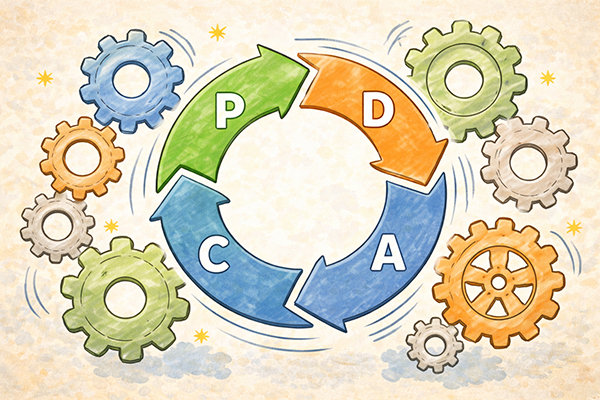 継続的改善とは、「一度決めた仕組みやルールを作りっぱなしにせず、状況の変化や問題点に応じて少しずつ良くしていくこと」です。情報セキュリティを取り巻く脅威や技術、法律は常に変化しているため、数年前に作ったルールが今でも最適とは限りません。そこで、運用を続けながら定期的に見直しを行い、改善を積み重ねていく姿勢が求められます。
