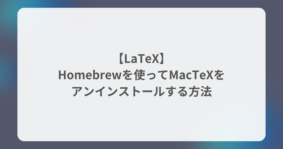 本記事では、Homebrewを使って、MacからMacTeXをアンインストール(削除)する方法について解説します。